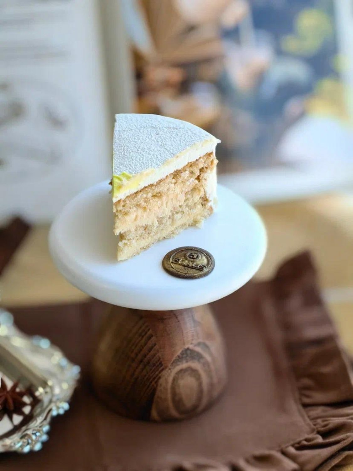 Бисквит классический, ванильное суфле и вафельный рожок.