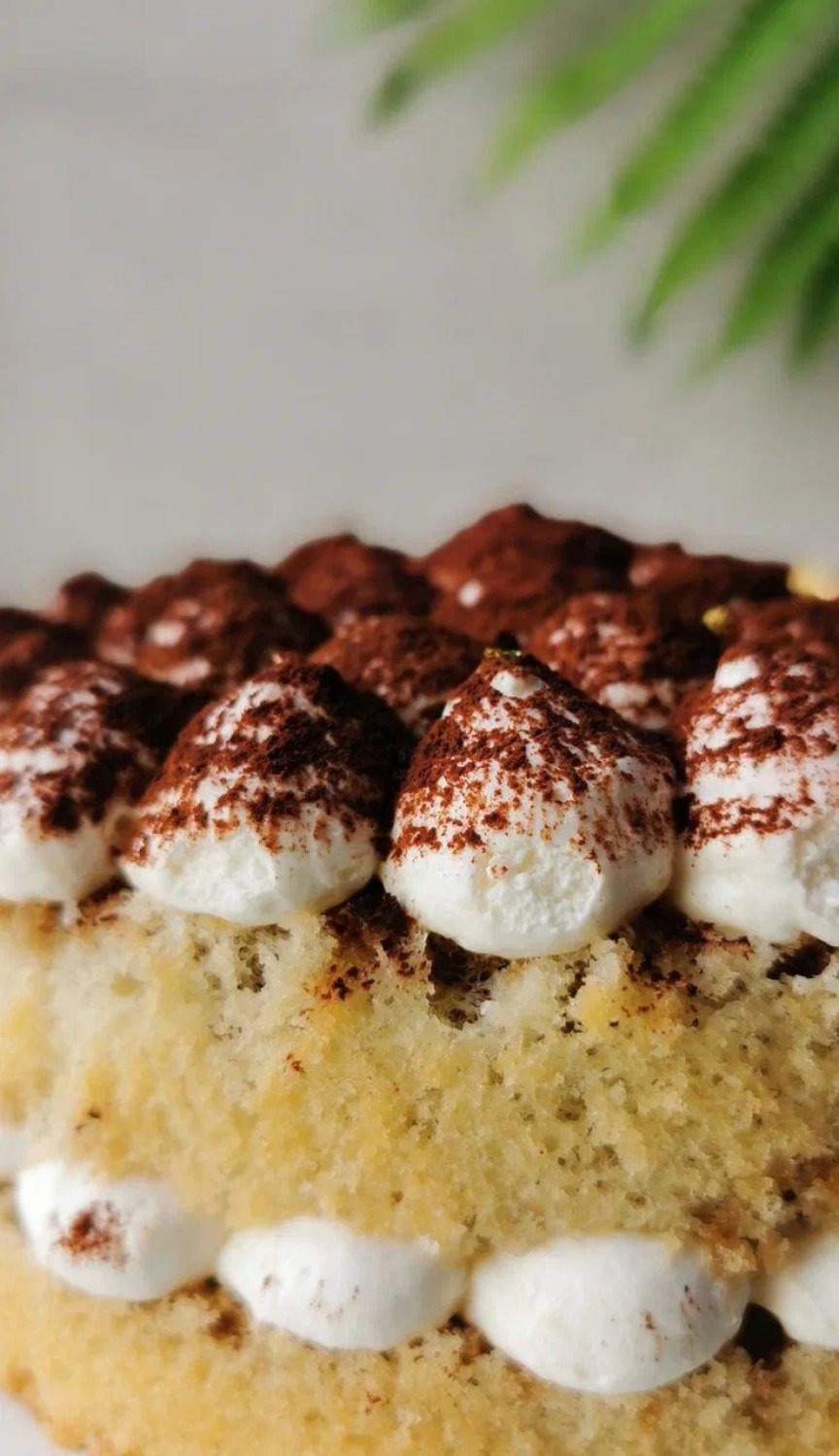 Бисквит классический с какао, крем "Беллария", сметанный крем, чернослив.