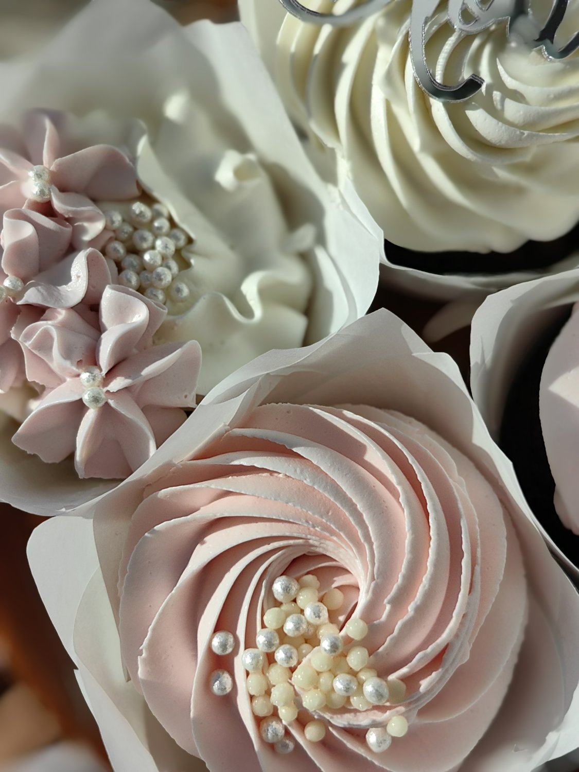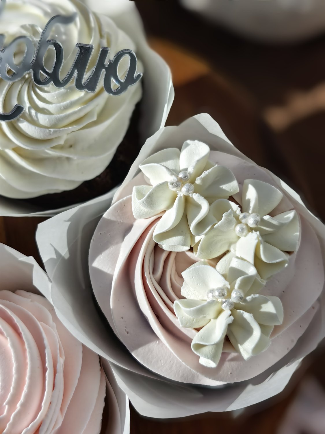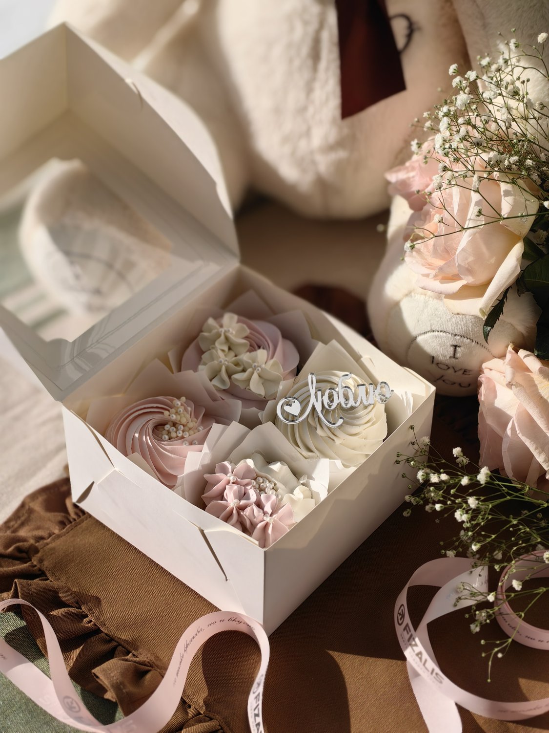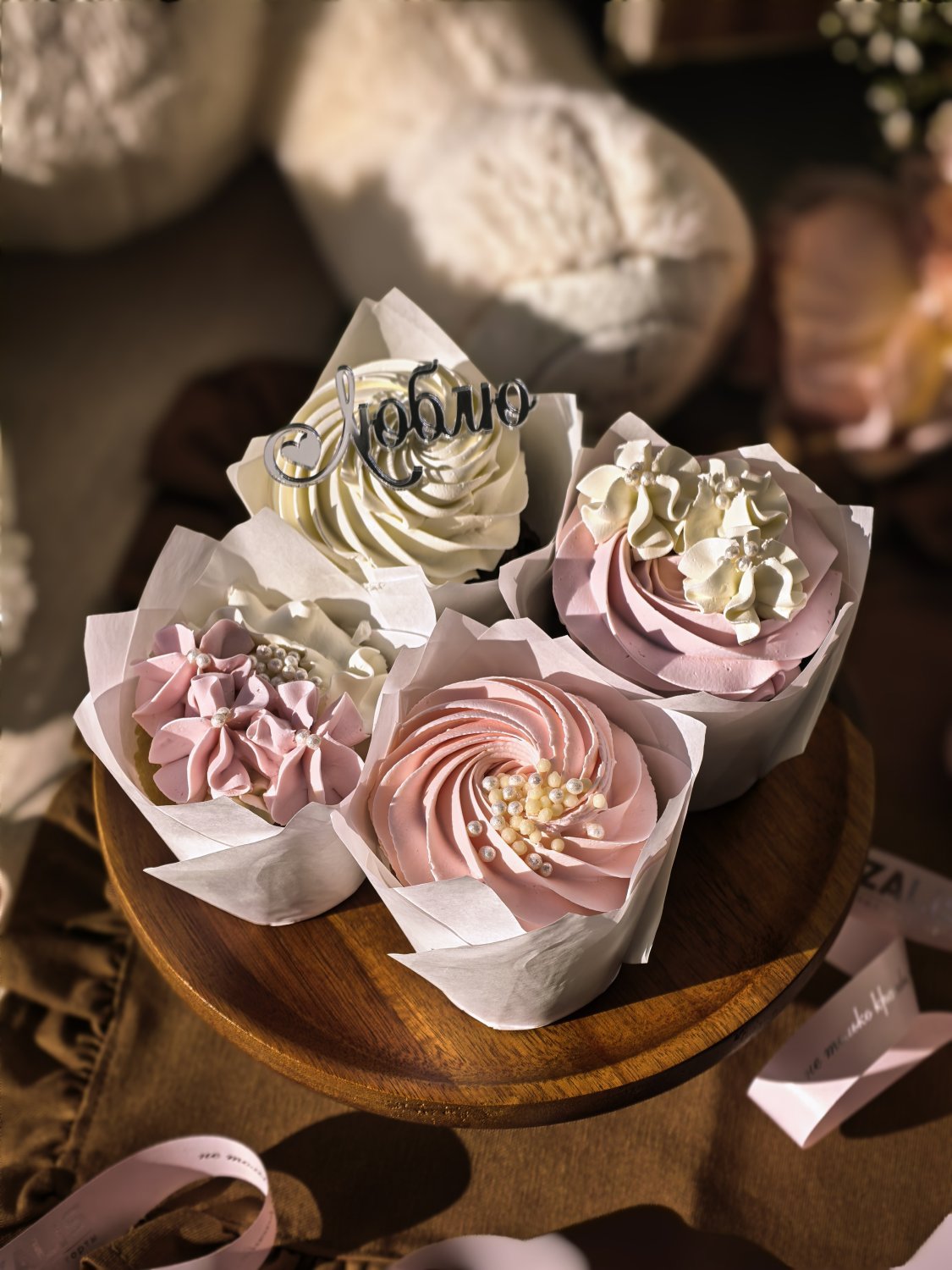 В набор входят 2 шт. ванильных капкейка, 2 шт. шоколадных.